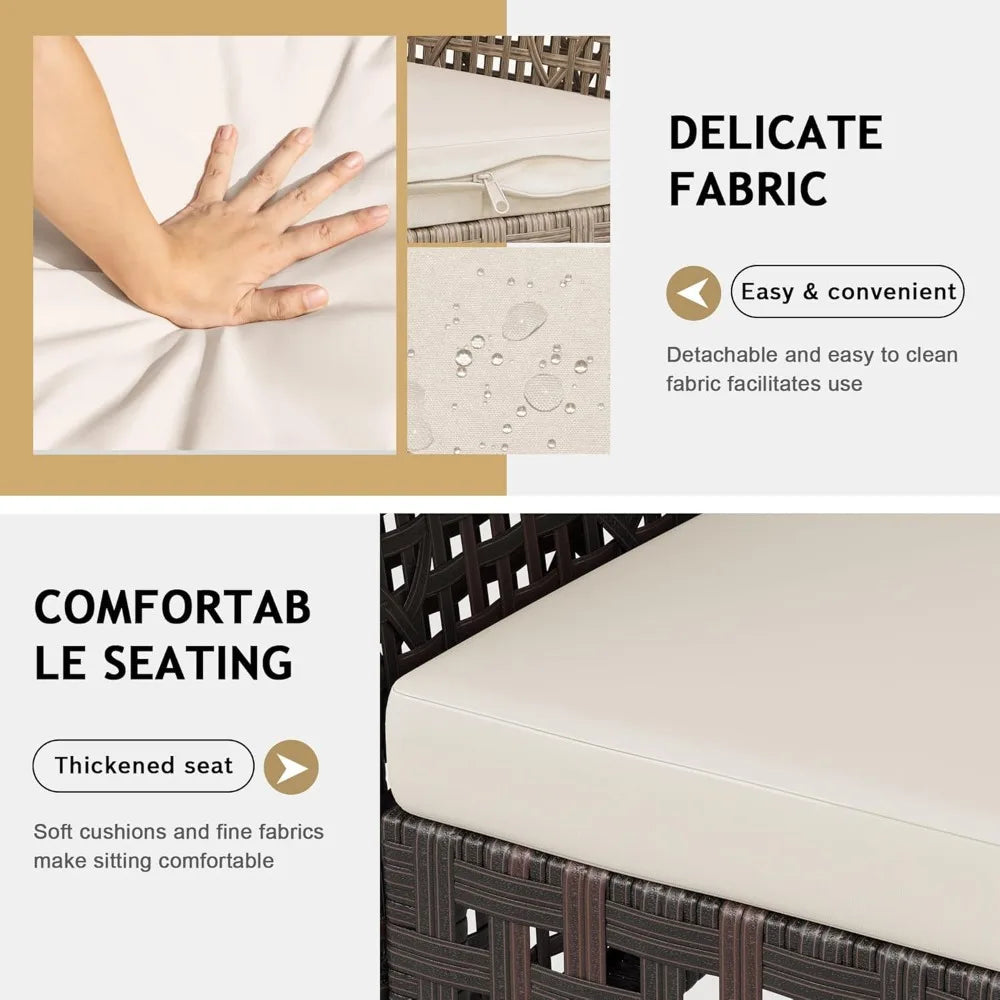 - Brown, weather-ready PE rattan wicker resists sun, rain, and fading, keeping its finish and clean lines through seasons of use.